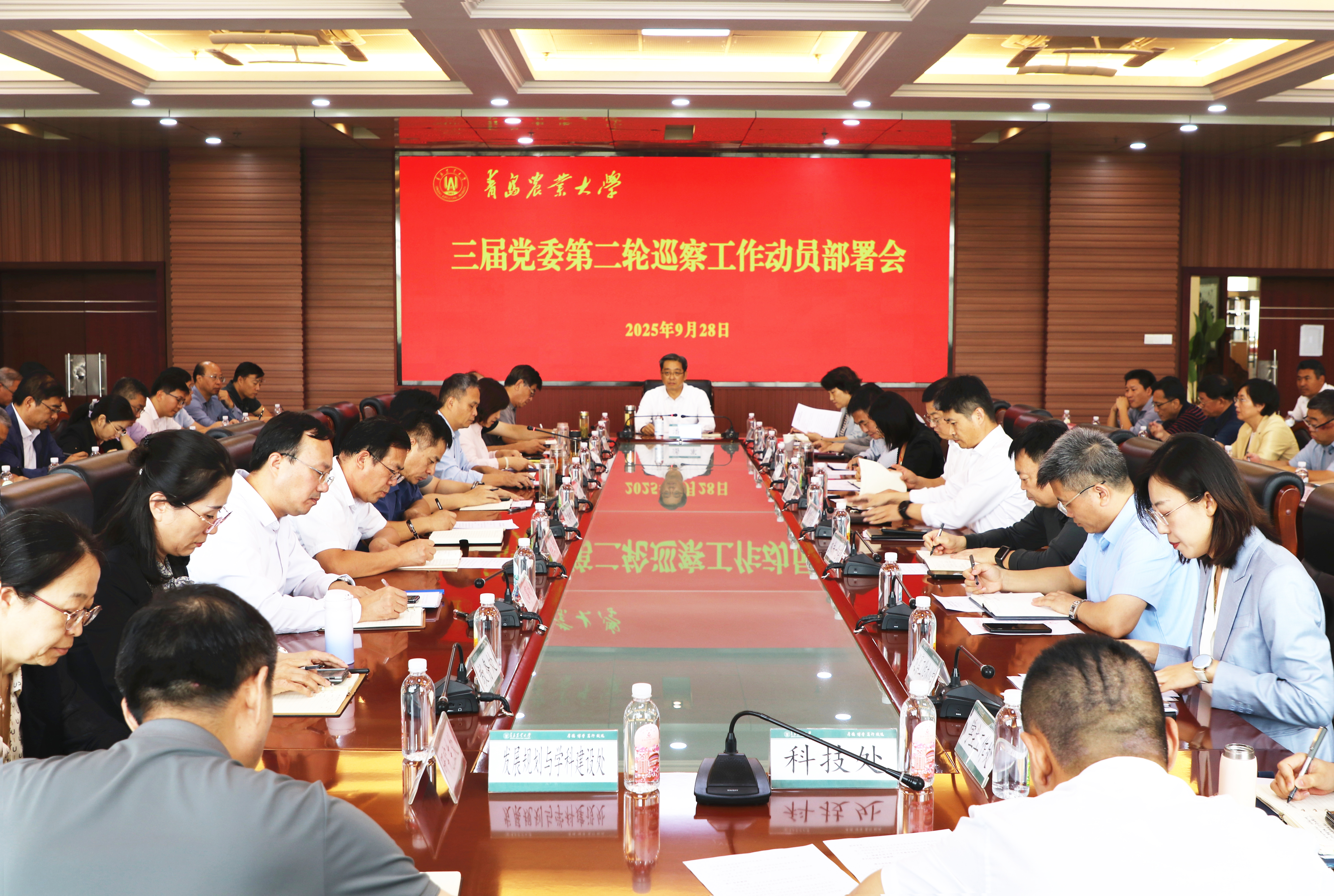 9月28日下午,青岛农业大学召开三届党委第二轮巡察工作动员部署会,深入学习习近平总书记关于党的自我革命重要思想以及关于巡视巡察工作的重要论述,动员部署第二轮巡察工作。校党委书记、巡察工作领导小组组长潘军出席会议并讲话,校纪委书记、监察专员、巡察工作领导小组副组长陈相艳主持会议。